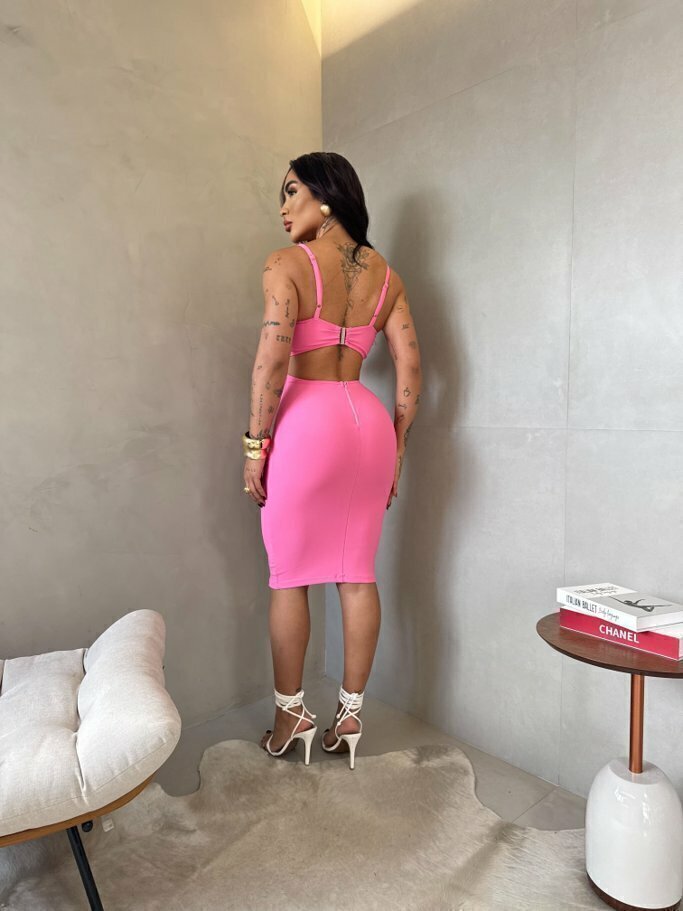 Vestido Midi na Montaria de poliamida, tecido encorpado de alta qualidade, possui zíper e fecho atrás, alças com reguladores, com bojo e uma modelagem perfeita, disponível nos tamanhos: